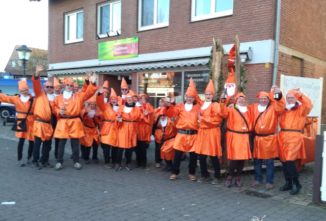 Das Kolpingwerk Deutschland wird dieses Jahr 175 Jahre alt. Anlässlich dieses Jubiläums durfte eine bunte Truppe aus 50 Kolpingmitgliedern aus ganz Deutschland am Rosenmontagsumzug in Köln mitgehen. Verkleidet als Wichtel in den Kolpingfarben (orange / schwarz) und ausgestattet mit einer Vielzahl an Bonbons, Waffeln und Pralinen feierten die Kolpingjecken bei außergewöhnlich gutem Wetter zusammen mit zahlreichen kleinen und großen Jecken am Kölner Straßenrand Karneval. "Kamelle" und "Alaaf" (nicht Helau) war von überall zu hören. Die Wegstrecke war ca. 7,5 km lang. Als Bagagehelfer, die unermüdlich die Wurftaschen (Kamellebügel) der Läufer wieder auffüllten, konnte der Kolping 10 HandwerksgesellenInnen gewinnen, die aktuell (in unterschiedlichen Gewerken) auf der Walz unterwegs waren. Das war natürlich noch ein besonderes Statement für und vom Kolping! Die Kolpinggruppe unter dem Motto "Kolping Heinzel, wir leben und schaffen für eine bessere Welt" ist um 12:11 Uhr am Severins-Tor losgelaufen und um 16:11 Uhr am Endpunkt wieder eingetroffen. Da der Umzug just zum Halten kam, als die KolpingJecken vor der WDR-Tribüne standen, gab es ganze 5 Minuten Sendezeit für den einmaligen Auftritt der KolpingWichtelgemeinschaft. In der WDR-Mediathek kann man sich den Rosenmontagsumzug nochmal anschauen. Es war ein tolles Erlebnis! Vielen Dank an das Kolpingwerk, dass man sich um diese schöne Aktion gekümmert hat! Jürgen und Andrea Rump von der Kolpingsfamilie Havixbeck waren dabei!